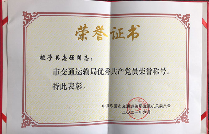 吳志強榮獲”市交通運輸局優(yōu)秀共產(chǎn)黨員“榮...
